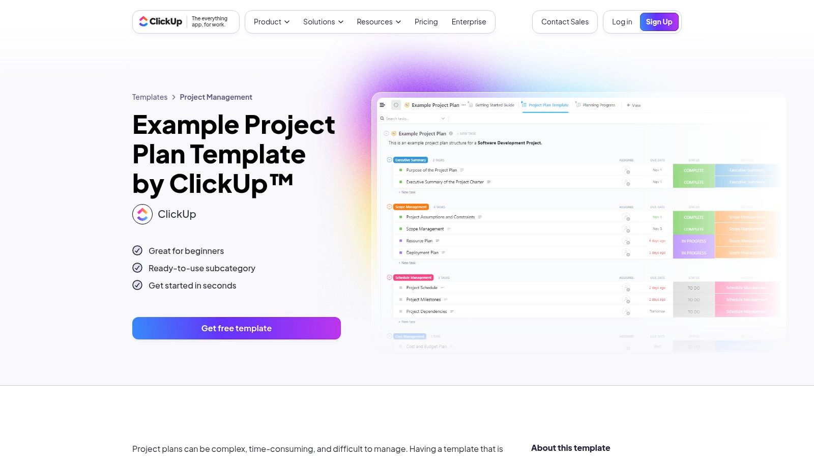 ClickUp positions itself as an all-in-one productivity platform, and its template library reflects that ambition. It offers a vast collection of project plan templates that leverage its powerful features, including multiple views like Gantt, Board, and Calendar. This makes it an excellent choice for teams seeking a single, customizable environment to manage complex workflows without juggling different tools. Users can quickly apply a pre-built structure and adapt it with custom fields and automations.