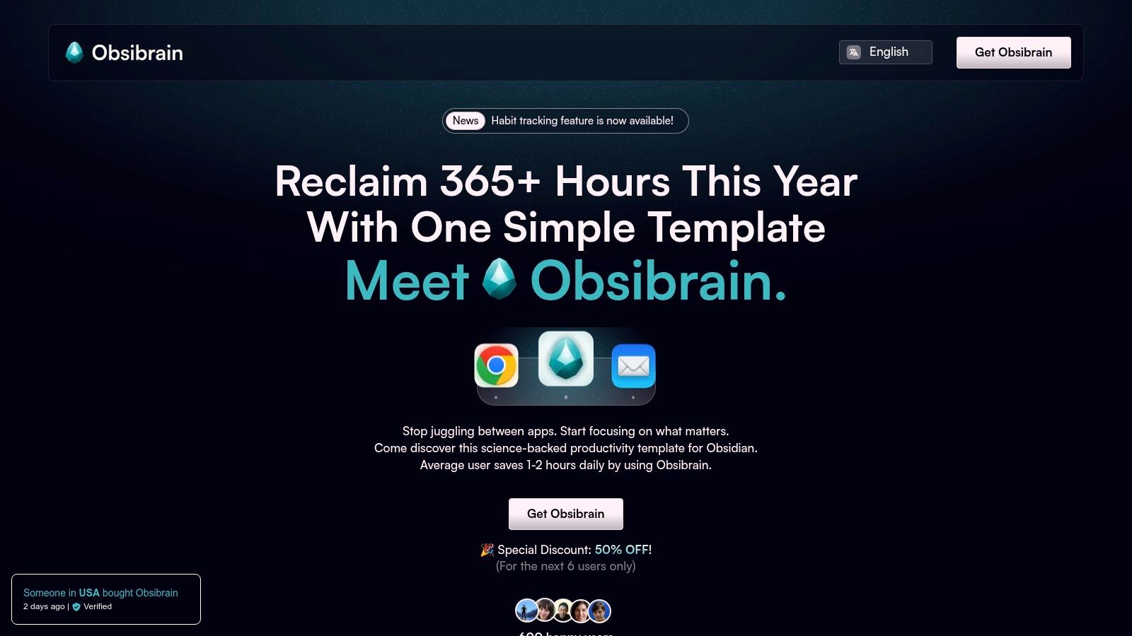 | Obsibrain 🏆 | All-in-one Obsidian template: tasks, notes, goals, habits, clients | ★★★★☆ (4.7/5), mobile-optimized, theme-compatible | One-time $29, lifetime updates | Obsidian users at all levels | Science-backed, P.A.R.A. + SMART project system, quick capture, offline access |