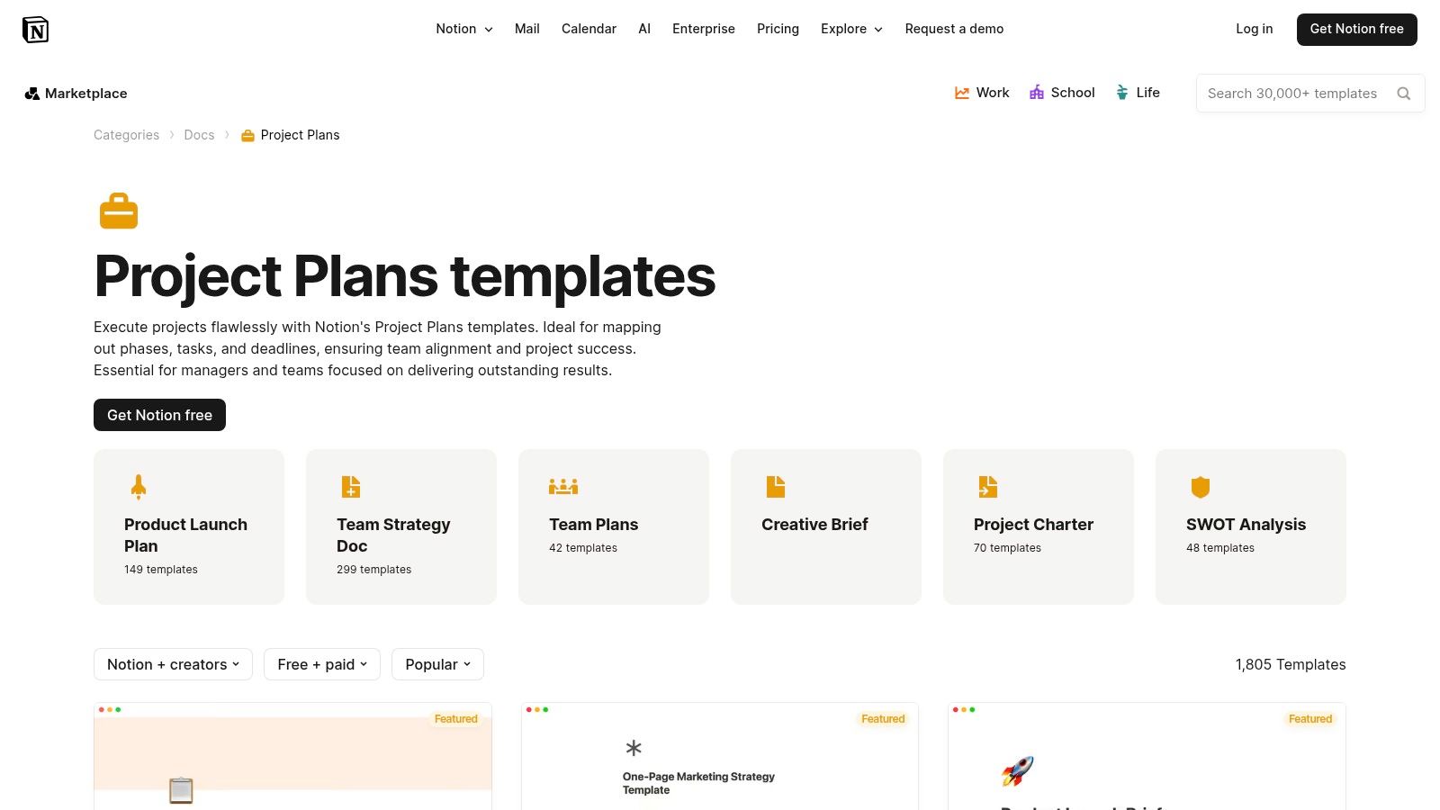 10. Notion Template Gallery (Project Plans)