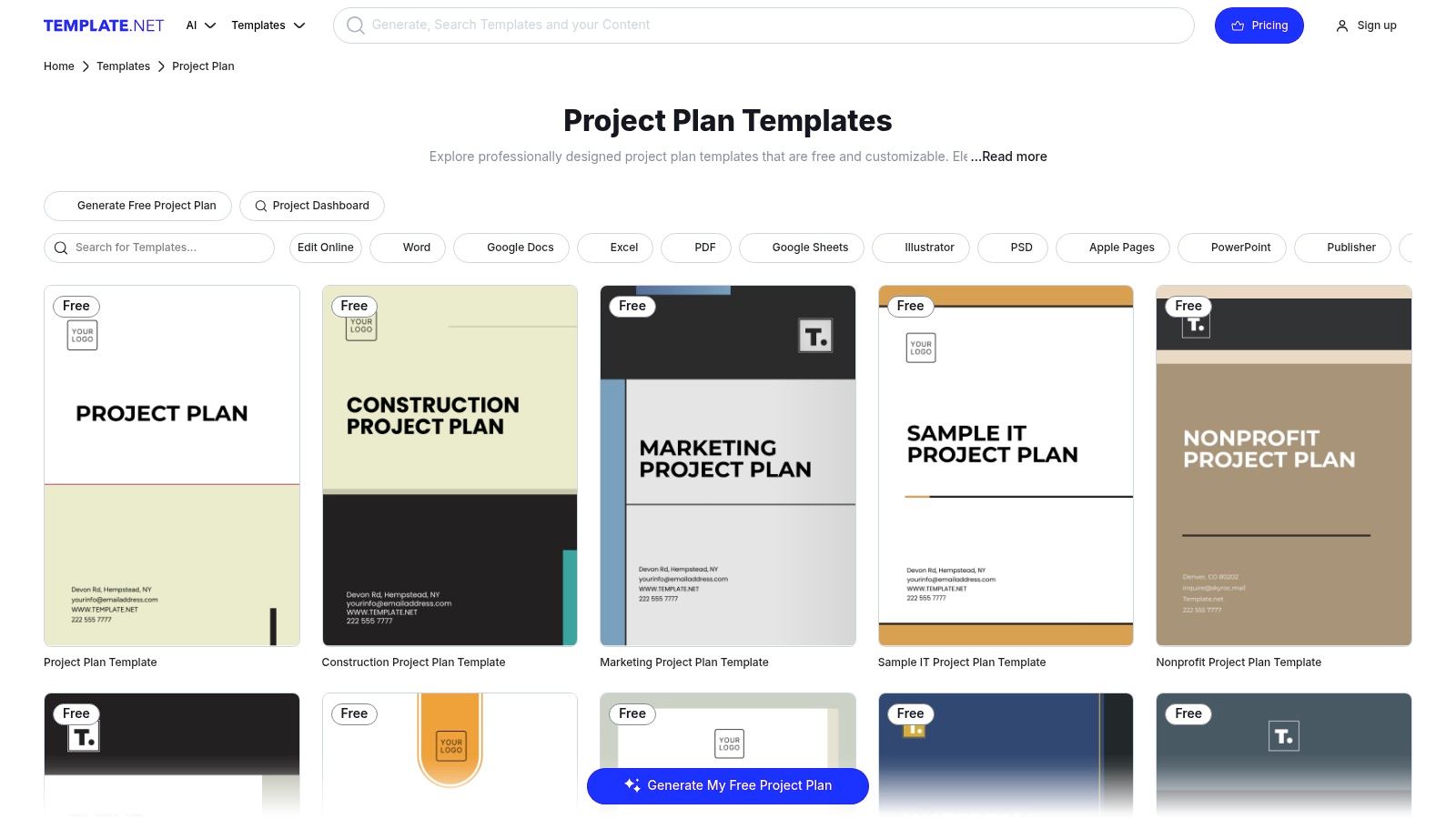 12. Template.net (Downloadable Project Plan Templates)