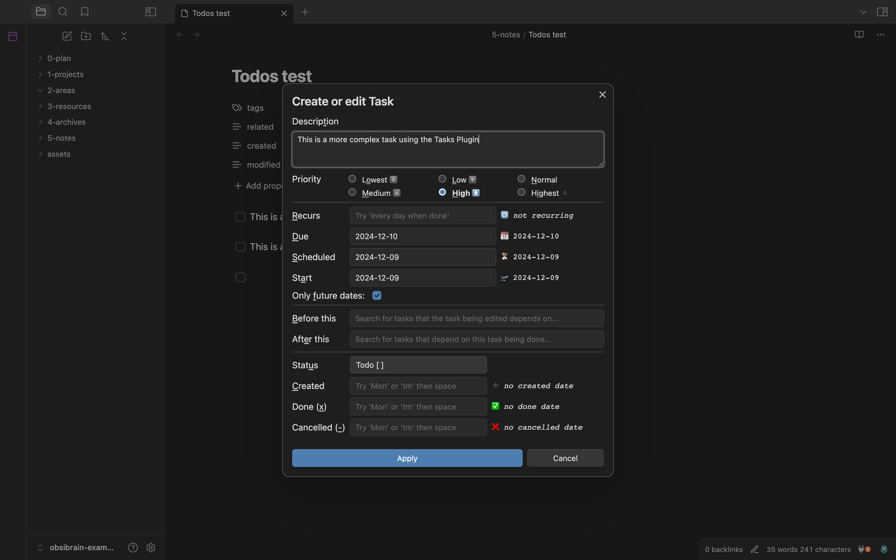 Note: We also recommend checking out the ready-made Obsibrain template, which comes with a complete task management setup.