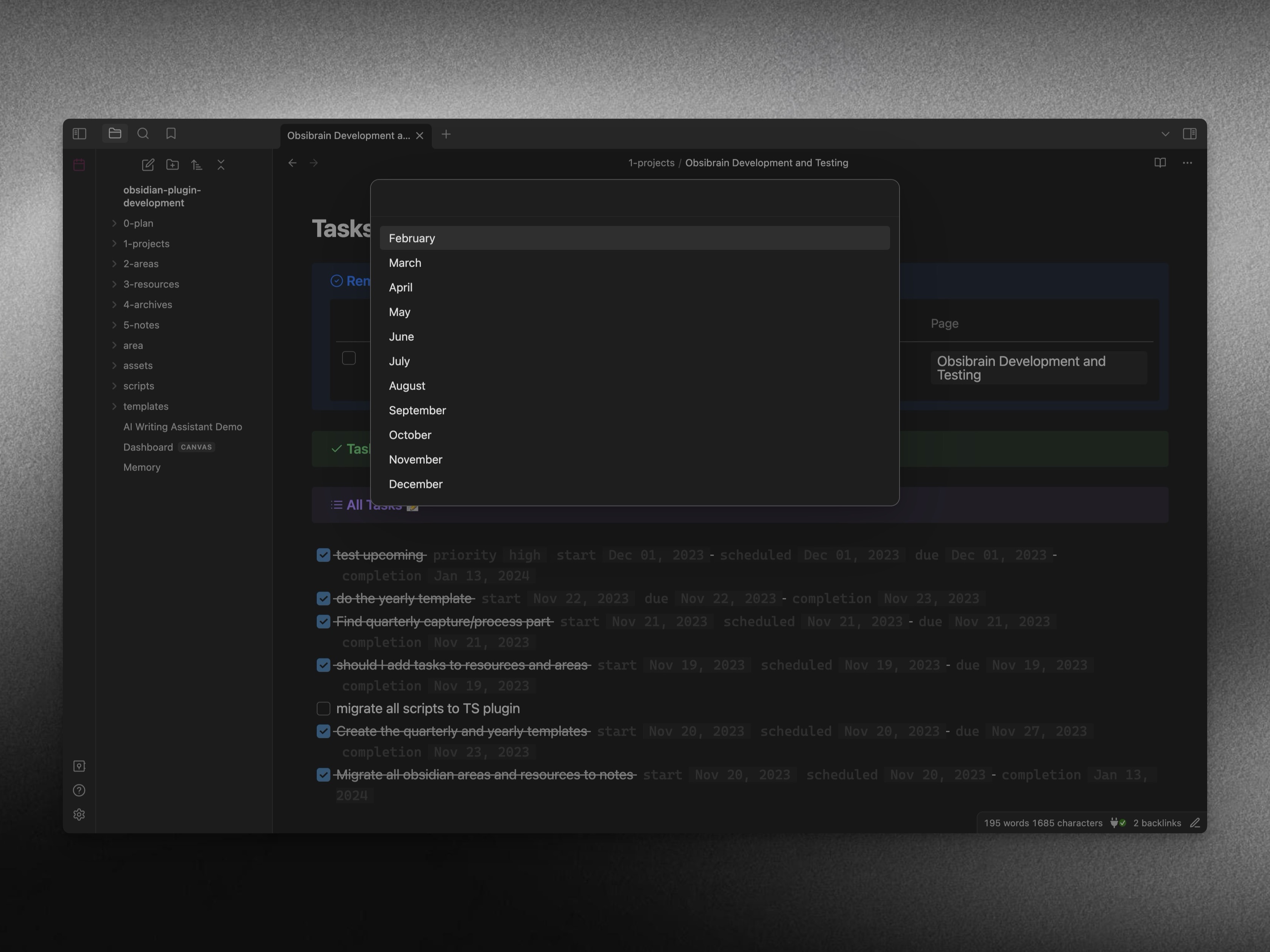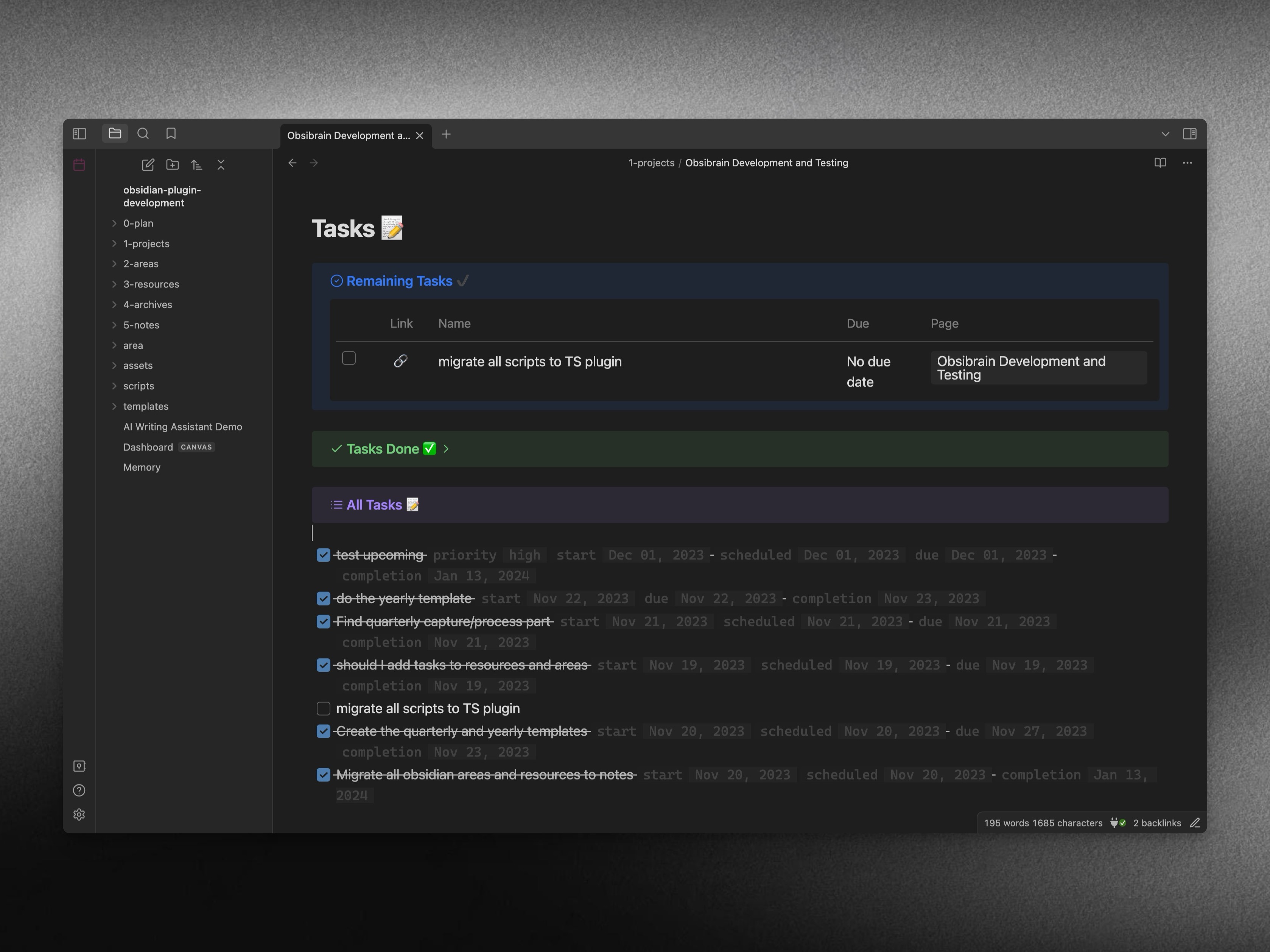 Tasks Metadata such as dates are now visible.