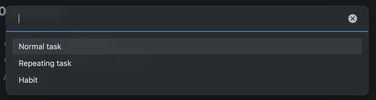 To create a new habit, simply open the command palette (using the keyboard shortcut Cmd + P) and search for "Obsibrain: New Task". Select the "Habit" option when prompted. This will open a modal where you can enter the habit details.
