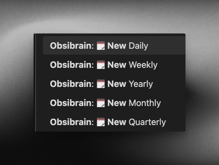 Missed a few weeks? Don't worry. Obsibrain allows you to create periodic notes for the previous year. This is perfect for "catching up" on your journaling or backfilling your history to maintain a consistent record of your growth. When you run a review command, the system will offer you the option to select the relevant timeframe.